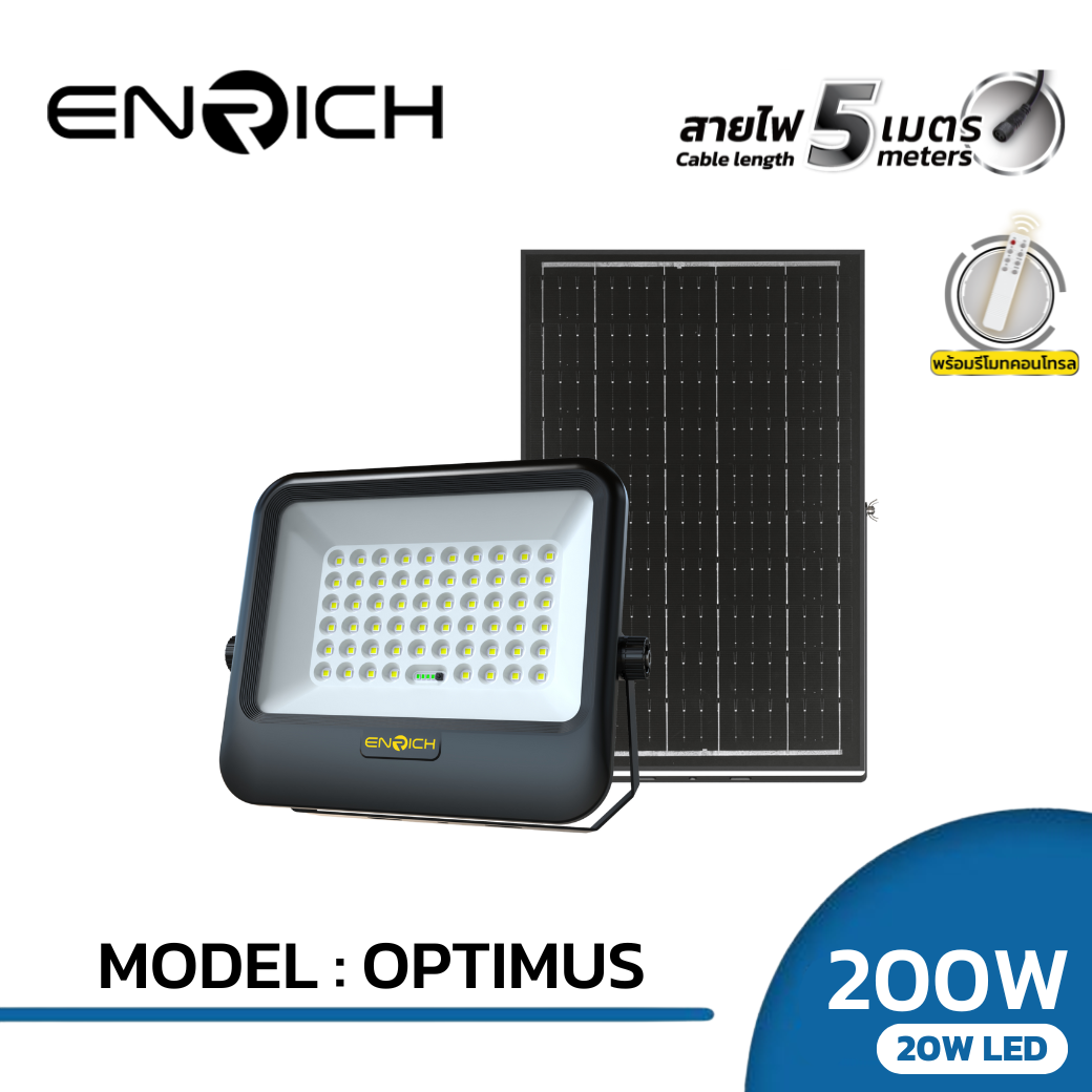 สปอร์ตไลท์โซล่าเซลล์ OPTIMUS 200W / LED 20W ENRICH